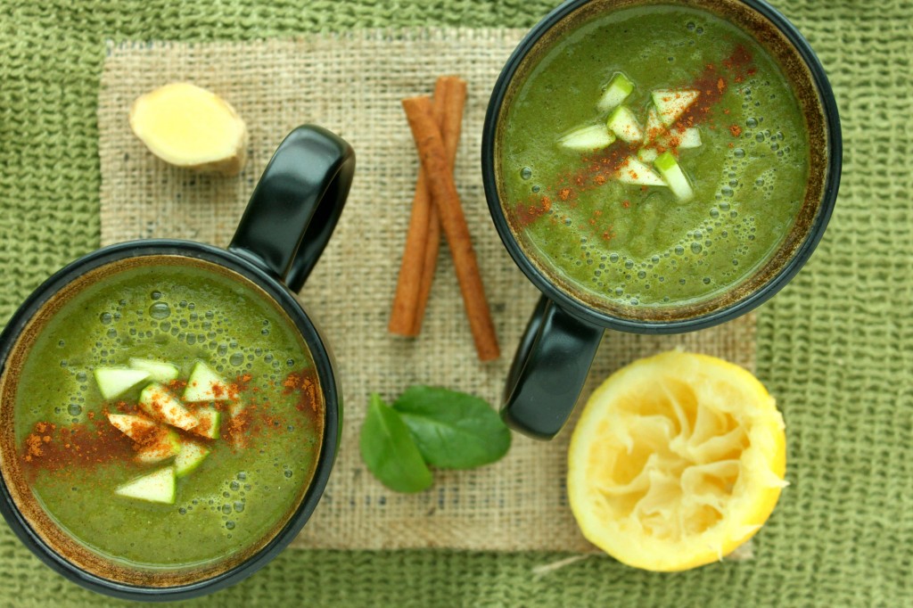Add the water, apples, spinach, ginger, cinnamon, and protein powder into a blender.