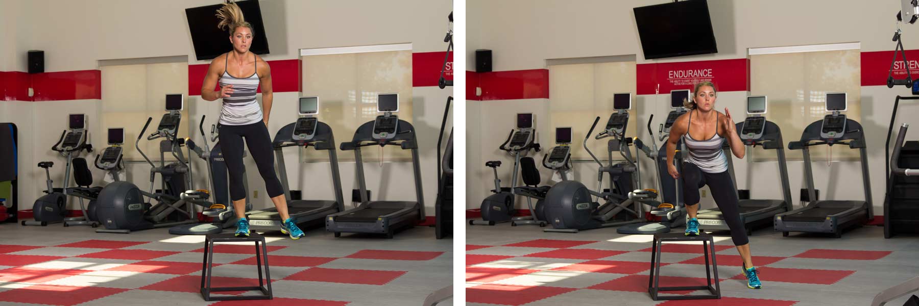 Position yourself sideways to a bench or step at knee height and place one foot on top. Using explosive movement, push yourself over to the other side of the bench landing softly with the opposite foot on top of bench. Quickly repeat back and fort. Land softly and in control with each foot, staying on the balls of your feet.