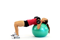 Grasp a light-moderate dumbbell in each hand, at chest level, next to body with elbows flexed.