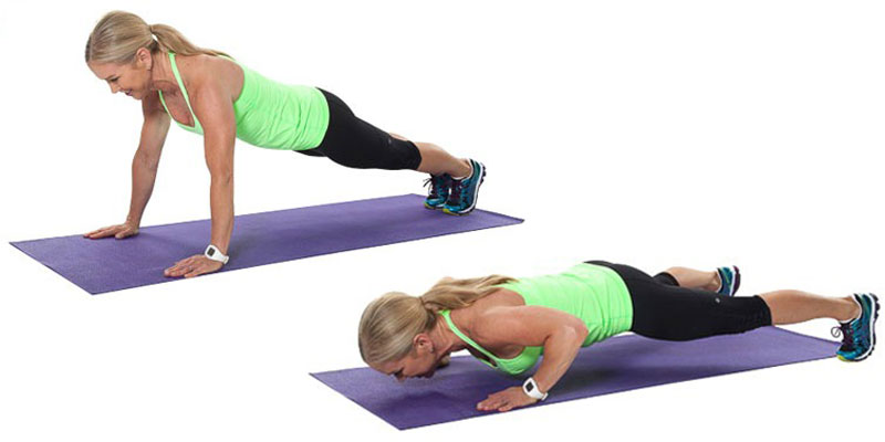 Start in a plank position with the shoulders aligned with wrists, feet together, and a neutral spine. Lower to a push-up while simultaneously jumping feet to a wide position. Keep the abdominals tight and maintain neutral spine as chest is lowered to floor. Jump feet together while simultaneously straightening arms and pushing up to the start position. Perform as many repetitions as possible for 30 seconds.