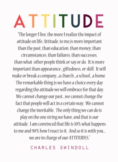 When life events (major and minor) try to bring you down to a spiral of negative thoughts, keep your attitude up.