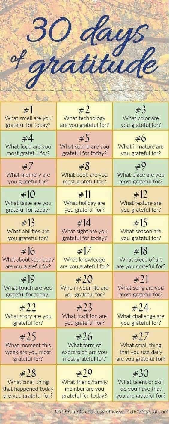 Write 3 to 5 items on a notepad that you a grateful for each day.