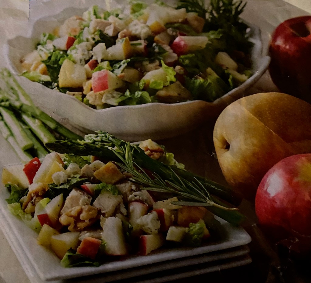 Divide salad among four (4) plates. Garnish each plate with two (2) asparagus spears and one (1) sprig of rosemary.