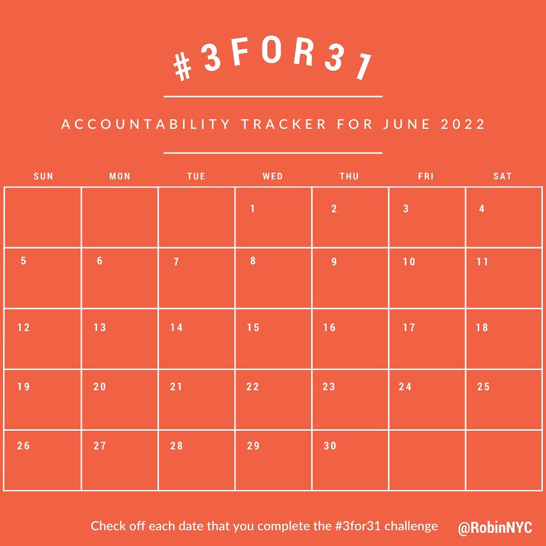 Share your progress, successes as well as mistakes and lessons learned on social media with #3for31 and @RobinNYC.