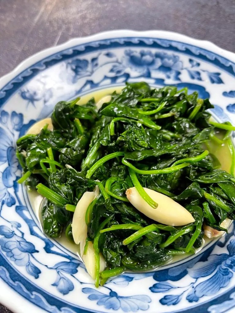 In a wok or cast iron pan over high heat, heat the grapeseed (or peanut) oil until very hot. Stir-fry the garlic cloves for one (1) minute. Add the oyster sauce and greens of choice. Stir-fry until tender-crisp (about 1 – 3 minutes).
