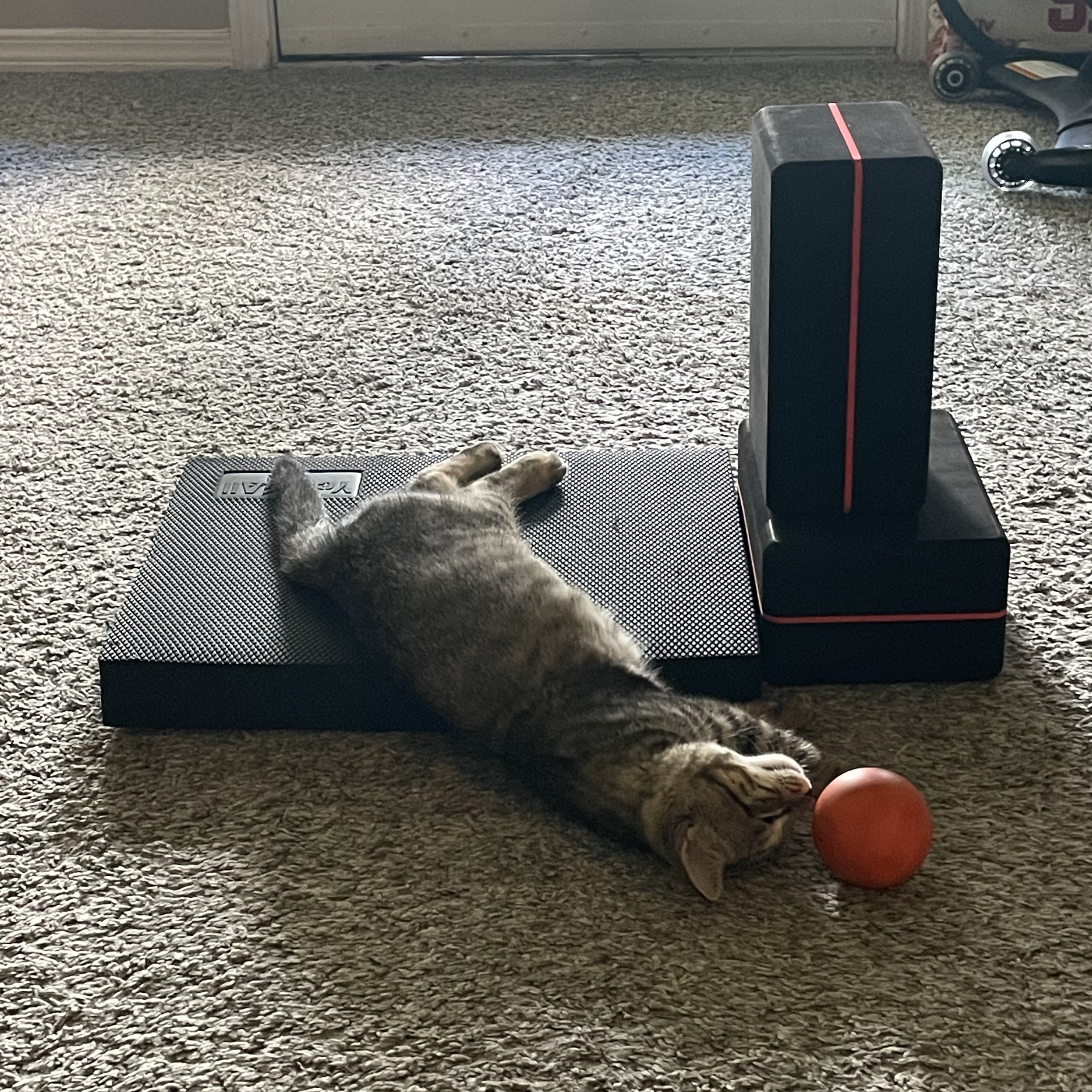 My soulmate cat, Cali crossed over the rainbow bridge (losing her battle with chronic kidney disease) on April 4, 2024. Exactly 10 days later a precious and playful brown tabby Β cat entered the world. A unique orange marking on her foot brings out the Cali (a calico cat) in her! Tali and Cali share other similarities as well: a love of water running out of the faucet, laying on my chest, and joining me on the mat for Peloton classes, to name a few!
