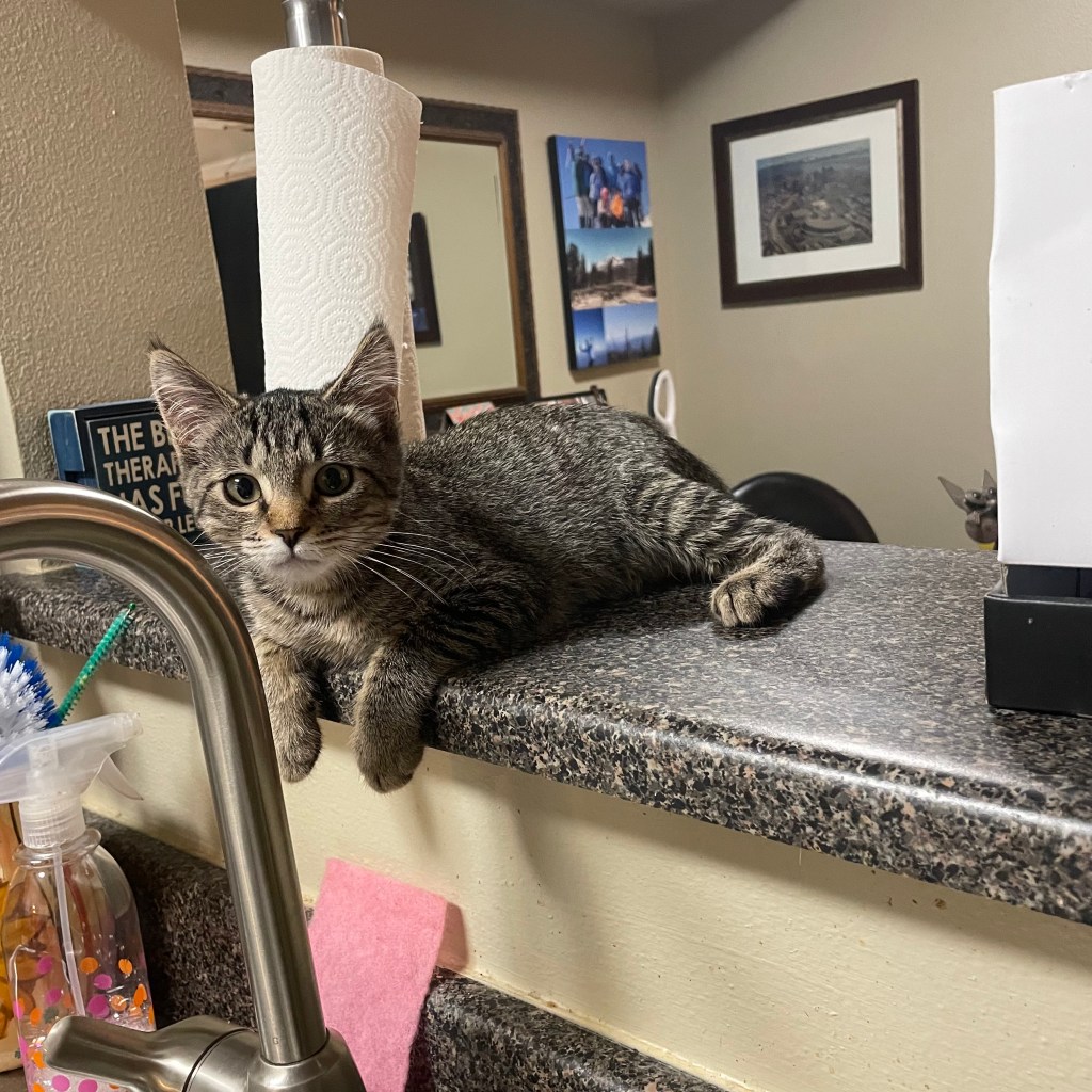 It appears that my 1 year Tali taught my newest 3 month kitten, Chatty how to jump up on the counter top this past week. Chatty has been jumping up and exploring this new area incessantly, and even knocking items off! I am making note of these tips and will give them a try!