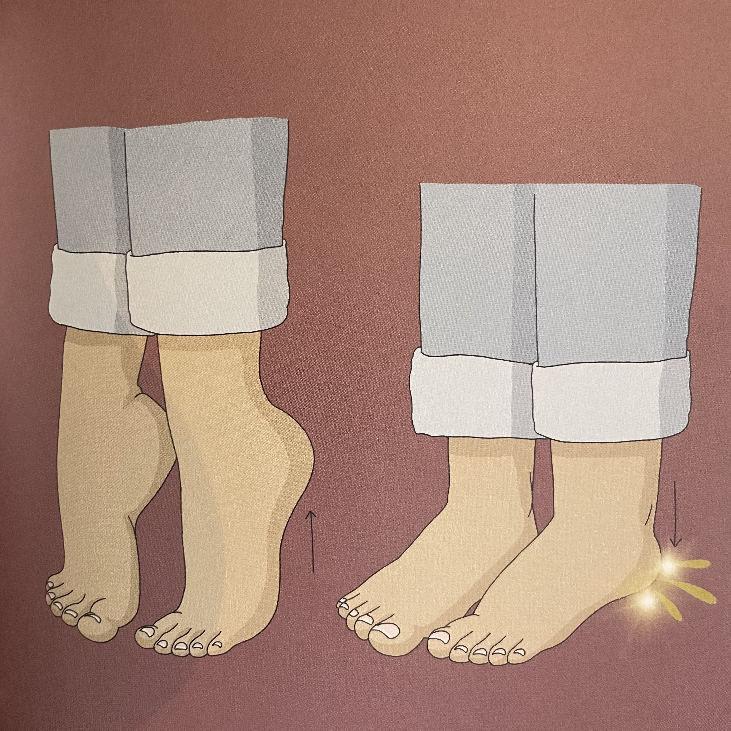 - Rise up onto your toes and then let yourself thud back down to your heels.