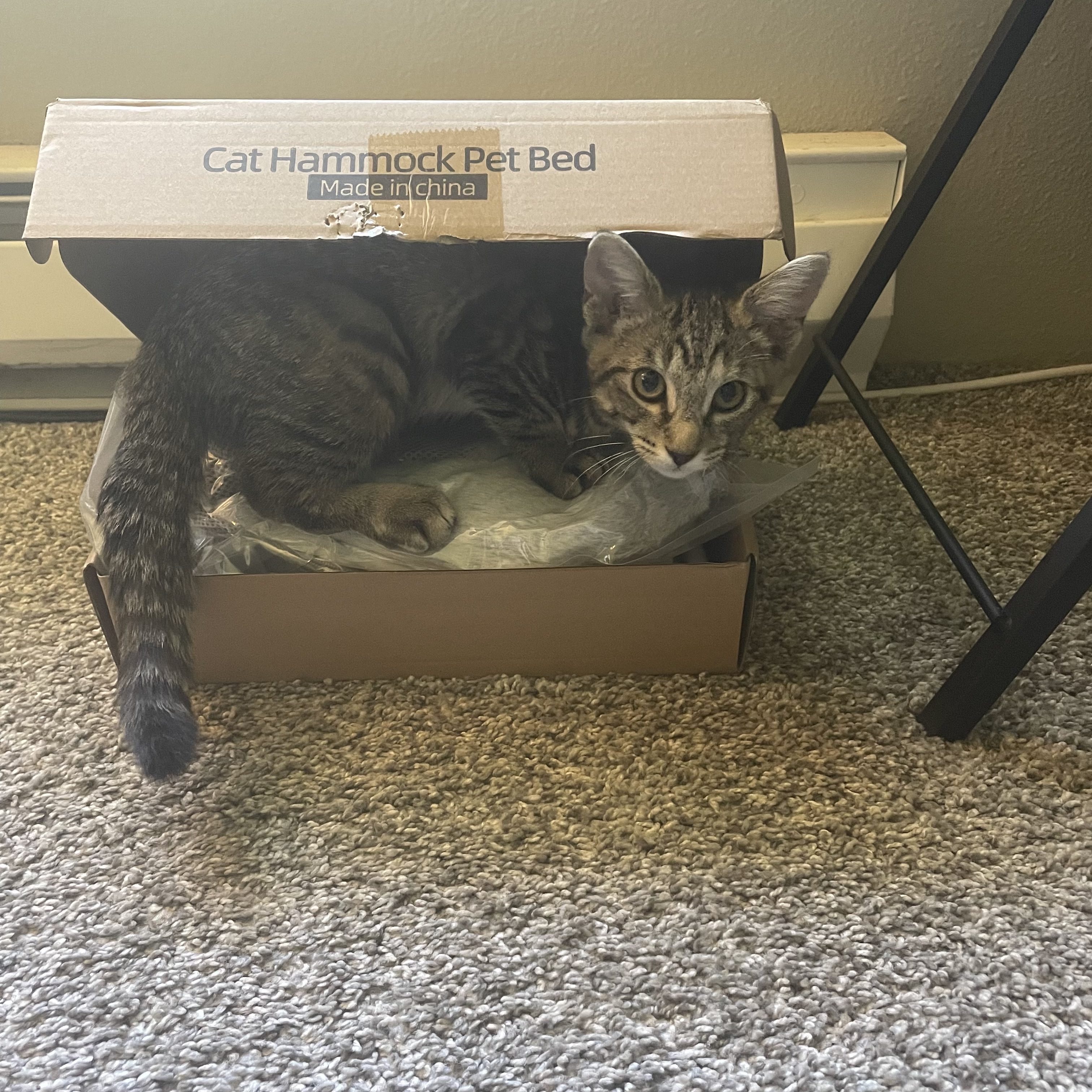 Cats, they provide an enduring unconditional love only cat parents understand. I am a cat mom of two senior cats (Cali and Minimi) I adopted at 5 weeks. They are my fur kids traveling with me across many life adventures from Southern California to Northern California and now Washington. Cali was my buddy, my side kick, and it broke my heart when she was diagnosed with chronic kidney disease in July 2023. While she was only given a few months or less to live, I became an even stronger cat mom to give her subcutaneous (IV) fluids each day which extended her life nearly one year! These fluid treatments each day became a true bonding experience. While it hurt to see my Cali gradually lose weight throughout the year, it filled me with joy to see how much these fluid treatments brought her energy and a return to her adorable cat self. Sadly, she lost her battle with kidney disease in April 2024. I am so very grateful for the 17 years and many happiness memories with Cali. Cali will forever have a special place in my heart. Outside of caring for my own cats, I volunteer at the Seattle Humane 1 – 2 days a week. In June 2024, after one of my volunteer shifts, the time felt right to bring home a new cat. I adopted a 2 month brown tabby kitten who has a unique orange marking on her foot. This orange marking is my sweet Cali shining through in Tali. I often think that Cali returned as Tali because both cats share several personality traits. After my sweet Minimi passing in June 2025, Tali needed another feline friend. In August 2025, another 3 month tabby kitten at Seattle Humane found her forever home. Meet Carrie! I also call her Chatty because she is a chatterbox and loves to purr.