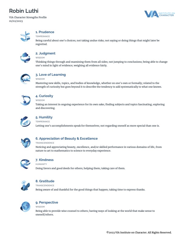 VIA Institute on Character: Character Strengths Profile
